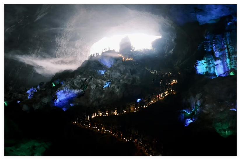 14:00-17:00游览【连州地下河】:游览神秘瑰丽的地下银河,这座巨型的天然石灰岩洞,因其岩洞口宽大而得名——大口岩,面积约45000平方米,共分三层,其中地下河全长约1500米,是目前全国最长、所发现最有价值的地下石林,团友由上层进入,步行浏览上层“南天门”、“鹊桥”、“仙人神田”等美景,后从下层乘船穿洞而返,船上观赏“小铁达尼号”、“莲花峡”“香蕉峡”等形态各异的钟乳石景象,沿河两岸布满石笋、石柱、石花、石幔景态盛万千,如进入地下石刻艺术宫殿;壮丽的景观和独特的组合,堪称岭南一绝。