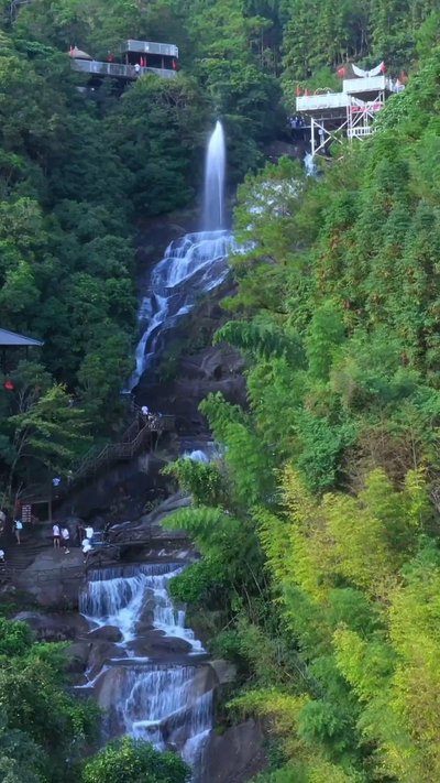 早餐后,前往【仙人洞景区】(包含大门票,特别赠送:天空之镜+天使之翼+喊泉,赠送项目,不用不退)位于广东茂名高州市的东北部,座落在“粤西第一峰”之称的大田顶南麓,是国家AAAA级旅游景区、广东省休闲农业和乡村旅游示范点,茂名市十大美丽乡村,是南国避暑圣地和原生态旅游目的地,“绿野、净土、仙人家”是其真实的写照。根据生态和季节变化,景区每年全力打造三次主题活动:2-5月,禾雀花杜鹃花观赏节;6-9月,观瀑避暑洗肺节;10-11月,丰收节;推介景区的美景和仙人洞的特色。仙人洞景区共分为五大板块:1、仙人广场区:客服中心、玉花小径、百瀑梯、溪谷人家、摇摆桥、牛马神石、第一禾雀花观赏区、仙溪露营地、帐蓬露营、自助烧烤、飞来瀑、神龟等;2、天河谷景区:溯溪探险,仙龟潭、一线天瀑布、千米观瀑栈道、仙女瀑、彩虹瀑(网红瀑布)、腾龙瀑、飞天瀑、5D玻璃桥、天河大瀑布、潘仙馆、潘仙洞、青云直上、天空之镜、天使之翼、第二禾雀花观赏区(水云长廊)、竹海大观、竹海滑道、空中漂流等;3、生态教育径:仙人洞祈福、仙人瀑(网红瀑布)、神雕、玉泉、鸳鸯潭、玉兰谷、第三禾雀花观赏区等;4、仙乳峰景区:睡娘山、高山草甸、仙乳峰(杜鹃花海)等;5、仙人洞山庄:农家美食、避暑山庄(住宿、会议)、仙人洞高山农场(高山黄牛、走地鸡、清水鸭、瘦身鱼)等,是一个集观赏性、参与性、休闲性康养于一体的综合性旅游度假区。 景区内常年溪水潺潺,飞瀑流泉,叠瀑连环,十分壮观。溪边长满了野生禾雀花藤,曼长百米,径大160㎝,据专家证实属千年古藤。景区仙乳峰的野生杜鹃,素有“花中西施”之美誉,花开时节,万亩绽放,红的、紫的、黄的、粉的……,漫山遍野,十分娇艳;故又有“杜鹃花王国”之称。仙人洞是有名的“空调村”,由于地广人稀,自然生态保存良好,森林密布,空气清新,7.4弱碱水质优良,冷暖气流交汇,冬暖夏凉,夏季气温20℃—25℃之间,负离子含量非常高,是一个天然的大氧吧、理想的康养避暑度假圣地。