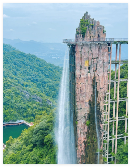 13:00—17:00前往游览【云门山旅游度假区】,他位于世界过山瑶之乡——广东省韶关乳源县境内,期间可在园内,赏【云门花海】,之后前往【玻璃桥景区】(含登桥费用,不含缆车费用,缆车双程门市110元/人)它是广东省首座全透明高空玻璃桥,桥面全部采用透明玻璃铺设,悬于望君台直通对面山峰,两峰地势险峻,中间峡谷横穿。踏在玻璃桥上,景区峡谷风光尽收眼底。行走其上彷如“人在空中走,景在脚下游”,惊险无比!云深雾重之际,桥上悬空赏景漫步云端,如若“脚踏祥云,腾云驾雾。在值风和日丽之时,踏在玻璃桥上,景区峡谷风光尽收眼底。行走其上彷如“人在空中走,景在脚下游”,惊险无比;云深雾重之际,桥上悬空赏景漫步云端,如若“脚踏祥云,腾云驾雾””。也可以在山顶平台观看-【云门山擎天大瀑布】他是集世界最高和最大的瀑布内观景电梯,瀑布出水口宽8米,从顶端直流而下,其落差达168米,相当于五十层楼的高度,瀑布内安装有3台观光电梯(自理上下行观光电梯费用40元/人),每台观光电梯可同时容纳15人,是世界上罕见的瀑布与观光电梯组合游玩体验项目,瀑布顶部设有80米长的玻璃观光平台供游客观景,站在观光平台上,可以欣赏云门山的无限美景游。